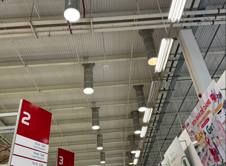 Tấm lấy sáng và ống lấy ánh sáng tự nhiên tại Trung tâm MM Mega Market Biên Hòa.