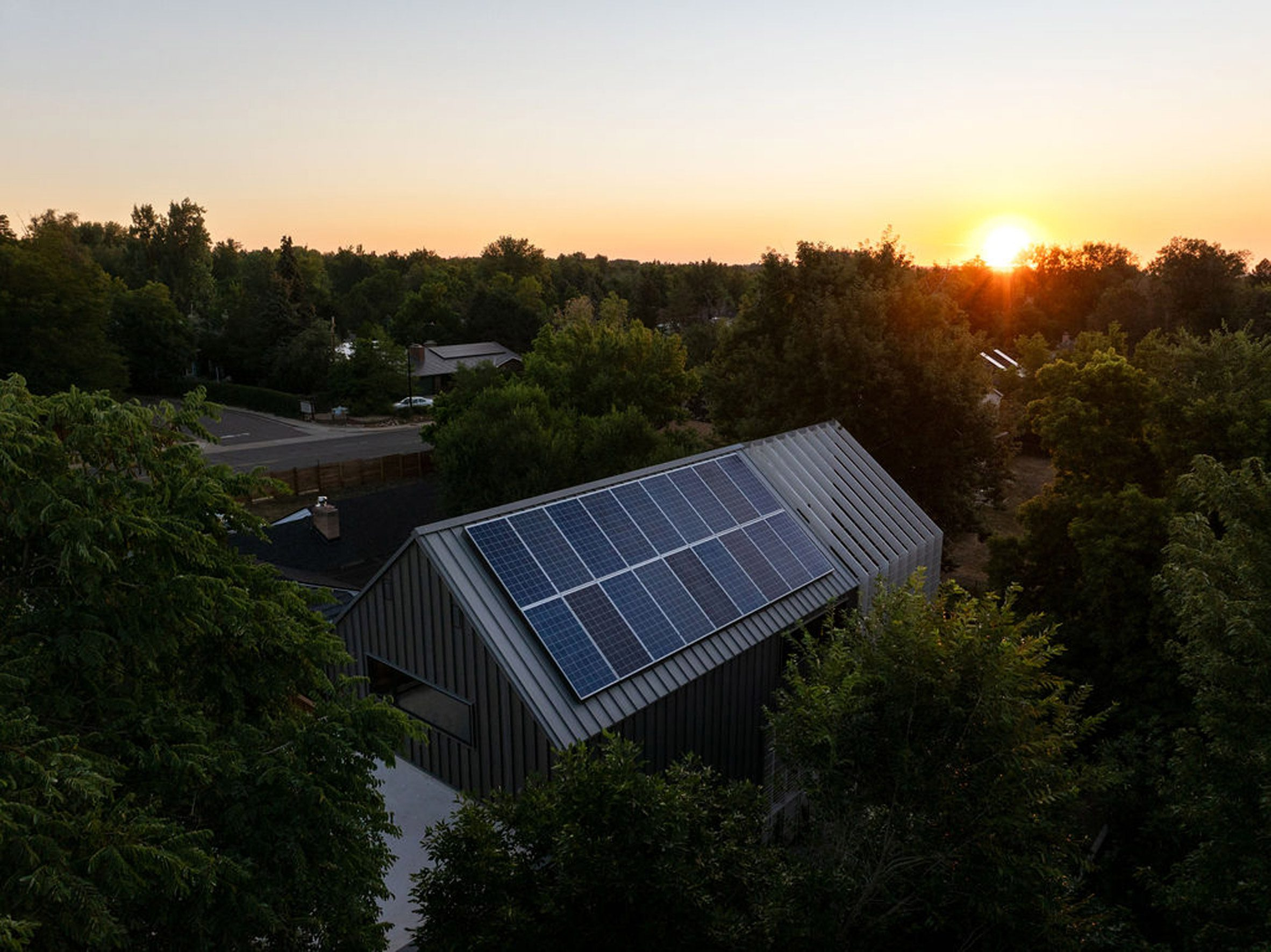 Iris Residence có mái kim loại và pin mặt trời (Ảnh: Mickkail Cain)