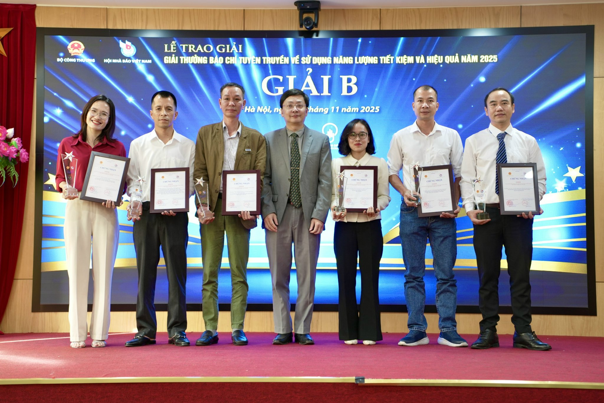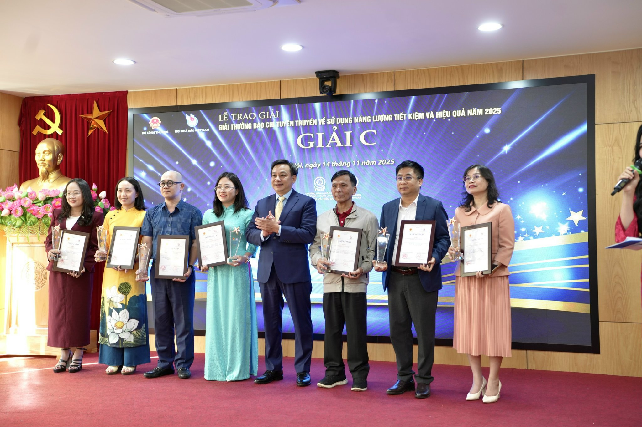 Danh sách các tác phẩm đạt giải năm 2025 Giải Đặc biệt (1 tác phẩm) Tác phẩm: Loạt 2 bài "Net Zero và những vấn đề đặt ra trong sử dụng tiết kiệm, hiệu quả năng lượng”. Nhóm tác giả: Bùi Nam Đông (Nam Đông), Lê Thị Thu Hằng (Thu Hằng), Bùi Thị Kim Thoa (Kim Thoa), Lê Thị Thanh Nga (Thanh Nga) – Ban Nhân Dân điện tử, Báo Nhân Dân. Giải A (4 tác phẩm) 1. Tác phẩm: Loạt 3 bài “Sử dụng năng lượng tiết kiệm và hiệu quả: Thực tế từ các doanh nghiệp FDI và kinh nghiệm cho doanh nghiệp Việt". Tác giả: Nguyễn Thị Hồng Tươi (Nhật Thu) – Báo Pháp luật Việt Nam. 2. Tác phẩm: Loạt 3 bài “Phát triển công nghiệp gắn với sử dụng năng lượng tiết kiệm và hiệu quả”. Nhóm tác giả: Trịnh Thị Lan, Lê Thế Phương – Báo và Phát thanh, Truyền hình Bắc Ninh. 3. Tác phẩm: Loạt 3 kỳ “Sử dụng năng lượng tiết kiệm và hiệu quả tại tỉnh Lào Cai và các địa phương”. Nhóm tác giả: Lê Thị Hồng Lý, Nguyễn Thu Hiền – Báo và Phát thanh, Truyền hình Lào Cai. 4. Tác phẩm: “Công nghệ kiến tạo – hạ tầng điện toán xanh”. Nhóm tác giả: Hà Trang, Mai Quyên, Hoàng Lâm, Viết Thái, Văn Thông, Văn Đại, Ngọc Hưng – Ban Chuyên đề - Khoa giáo, Đài Truyền hình Việt Nam. Giải B (10 tác phẩm) 1. Tác phẩm: Loạt 4 kỳ “Chiến binh nhí tiết kiệm năng lượng". Nhóm tác giả: Nguyễn Thắm, Trần Thành – Báo Thiếu niên Tiền phong và Nhi đồng. 2. Tác phẩm: “Thể chế hóa để chung tay tiết kiệm năng lượng đi vào cuộc sống”. Tác giả: Nguyễn Khắc Kiên (Khắc Kiên) – Báo Kinh tế và Đô thị. 3. Tác phẩm: Loạt 5 bài “Tiết kiệm năng lượng – Động lực phát triển bền vững". Tác giả: Vũ Mạnh Tưởng (Mạnh Tưởng) – Tạp chí Năng lượng mới. 4. Tác phẩm: Loạt 4 bài “Tháo các nút thắt để “tăng tốc” trong hành trình tiết kiệm và sử dụng năng lượng hiệu quả”. Tác giả: Tuyết Lan – Báo Lao động. 5. Tác phẩm: Loạt 3 kỳ “Tiết kiệm điện – Việc làm nhỏ, lợi ích to”. Nhóm tác giả: Đào Bích Vân (Bích Vân), Nguyễn Thị Ngọc Hà (Ngọc Hà), Nguyễn Ngọc Truyền (Ngọc Truyền), Nguyễn Thế Tiệp (Thế Tiệp), Lê Minh Tuấn (Lê Tuấn), Đỗ Văn Mạnh, Bùi Anh Chiến, Nguyễn Ngọc Lân (Ngọc Lân), Nguyễn Trọng Quân (Trọng Quân), Trần Kim Long (Kim Long) – Báo và Phát thanh, Truyền hình Lai Châu. 6. Tác phẩm: Loạt 2 kỳ “Tiết kiệm năng lượng là con đường ngắn nhất tới phát triển bền vững". Tác giả: Nguyễn Trần Anh Thu – Ban Văn hóa – Xã hội, Đài Tiếng nói Việt Nam. 7. Tác phẩm: “Kiểm toán năng lượng, chìa khóa tiết giảm chi phí sản xuất”. Nhóm tác giả: Nguyễn Thị Kim Hoa, Nguyễn Mạnh Thuận, Trần Ngọc Sơn, Lê Thị Thủy Linh, Nguyễn Lê Long – Báo và Phát thanh, Truyền hình Nghệ An. 8. Thúc đẩy tiết kiệm năng lượng thông qua chuyển đổi số". Nhóm tác giả: Đặng Huyền, Chiến Sơn, Lê Thanh – Đài PTTH Hà Nội. 9. Tác phẩm: “Kilowatt – Học sinh chung tay sử dụng điện an toàn tiết kiệm (Mùa 2 – tập 1)”. Tác giả: Nhóm sản xuất chương trình – Đài PTTH Thành phố Hồ Chí Minh. 10.Tác phẩm: “Mẹo nhỏ - tiết kiệm lớn". Nhóm tác giả: Nguyễn Minh Đức, Nguyễn Thị Mỹ Hạnh, Nguyễn Trí Nguyên. Giải C (10 tác phẩm) 1. Tác phẩm: “Giải pháp “kép" bảo đảm nhu cầu tiêu thụ điện và tối ưu chi phí". Tác giả: Minh Hằng – Bảo và Phát thanh, Truyền hình Thanh Hóa. 2. Tác phẩm: “Giải pháp phổ cập pin năng lượng mặt trời cho tàu, ghe”. Tác giả: Thanh Hải – Tạp chí Ánh sáng và Cuộc sống. 3. Tác phẩm: “Phát triển quỹ tài chính và mô hình ESCO – Đòn bẩy cho sử dụng năng lượng hiệu quả tại Việt Nam". Nhóm tác giả: Phạm Văn Hạ Vĩ (Hạ Vĩ), Lê Thị Lan Anh (Lan Anh) – Tạp chí Công thương – VPĐD khu vực miền Trung – Tây Nguyên. 4. Tác phẩm: Loạt 5 bài “Vật liệu xanh trong phát triển kiến trúc ứng phó với biến đổi khi hậu: Hành trình kiến tạo tương lai bền vững". Nhóm tác giả: Trần Văn Ảnh, Lê Tâm, Xuân Hiển, Vũ Đình Thế - Tạp chí Kiến trúc. 5. Tác phẩm: “Chuyên đề 05 bài: ISO 50001: Từ nhận thức tới hành động”. Nhóm tác giả: Nguyễn Tiến Dũng (Tiến Dũng), Phạm Tuấn Anh (Vân Anh), Trần Thị Giang (Trà Giang), Nguyễn Thị Hương Duyên (Hương Duyên) – Tạp chí Tự động hóa Ngày nay. 6. Tác phẩm: "Chuyện tiết kiệm điện trở thành một nét văn hóa ở vùng cao Tuyên Quang". Nhóm tác giả: Lý Thị Thu (Lý Thu), Hoàng Bích Ngọc (Bích Ngọc) – Báo và Phát thanh, Truyền hình Tuyên Quang. 7. Tác phẩm: “Podcast: Giám sát chặt chẽ việc sử dụng điện". Tác giả: Từ Thiên Hậu – Báo và Phát thanh, Truyền hình Quảng Ngãi. 8. Tác phẩm: “Thực hành tiết kiệm điện tại hộ gia đình". Nhóm tác giả: Đặng Thị Hoàng Oanh, Nguyễn Lan Đài, Hà Thị Diễm – Đài PTTH Thành phố Hồ Chí Minh. 9. Tác phẩm: “Tiết kiệm điện ở Côn Đảo". Nhóm tác giả: Minh Huệ, Sĩ Nghiệp – Đài PTTH Thành phố Hồ Chí Minh. 10. Tác phẩm: “Tập trung các giải pháp giúp người dân sử dụng điện tiết kiệm và hiệu quả". Nhóm tác giả: Minh Trang, Quang Huy, Vi