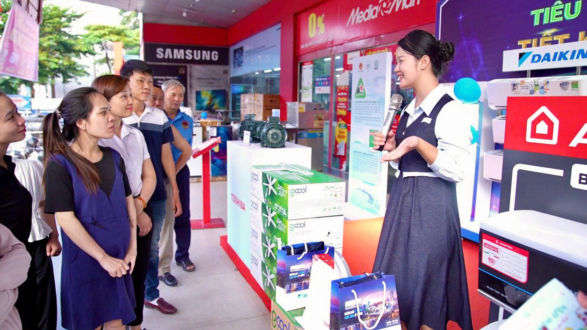 Chương trình Gian hàng xanh diễn ra tại các Trung tâm thương mại, Siêu thị điện máy lớn, cùng các Triển lãm chuyên đề về thiết bị tiết kiệm điện trên toàn quốc. Mỗi gian hàng là không gian tương tác và trải nghiệm, nơi người tiêu dùng có thể trực tiếp tiếp cận, tìm hiểu và tư vấn về những giải pháp công nghệ tiết kiệm điện hiện đại, dễ ứng dụng trong đời sống sinh hoạt và sản xuất.