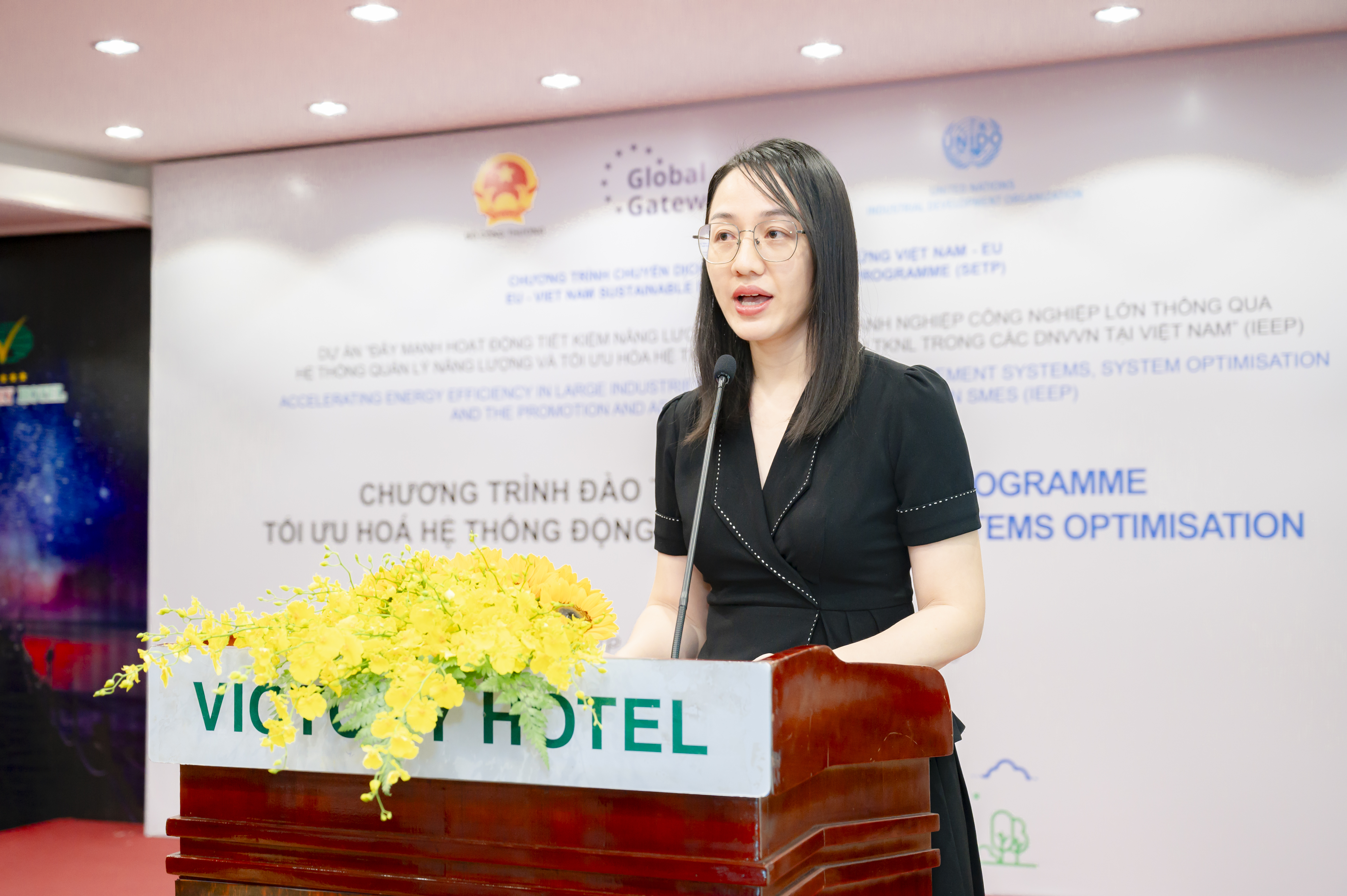 Trong phần khai mạc, bà Trần Thị Thùy Linh, đại diện Cục Đổi mới Sáng tạo, Chuyển đổi xanh và Khuyến công đã thay mặt Bộ Công Thương phát biểu chào mừng các học viên đến từ các doanh nghiệp công nghiệp, trường đại học công nghệ, trung tâm khuyến công và tiết kiệm năng lượng và các công ty tư vấn năng lượng từ các tỉnh/thành phố ở miền Nam. Bà Thùy Linh cho biết: “Trong thời gian qua, Bộ Công Thương đã triển khai mạnh mẽ các chương trình đào tạo, bồi dưỡng nâng cao kiến thức cho các tổ chức, cá nhân tư vấn hoạt động trong lĩnh vực sử dụng năng lượng tiết kiệm và hiệu quả; các doanh nghiệp công nghiệp và các nhà cung cấp thiết bị. Các hoạt động này chính là nền tảng để xây dựng mạng lưới liên kết, hỗ trợ lẫn nhau trên toàn quốc để khai thác tối đa nguồn lực, thúc đẩy việc áp dụng các giải pháp công nghệ mới nhằm tiết kiệm năng lượng và giảm phát thải.”