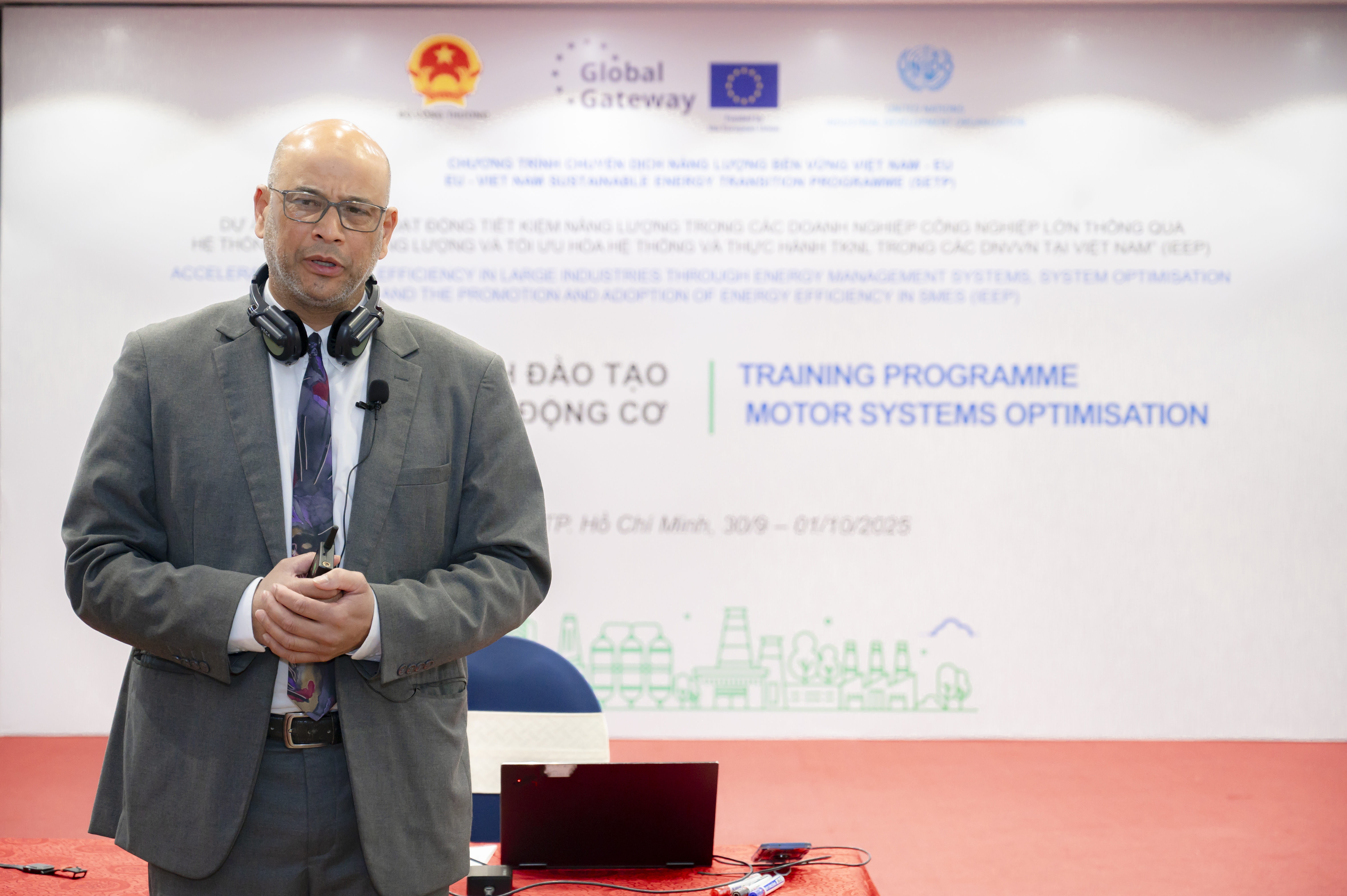 Chương trình đào tạo này nằm trong khuôn khổ dự án “Đẩy mạnh hoạt động tiết kiệm năng lượng trong các doanh nghiệp công nghiệp lớn thông qua hệ thống quản lý năng lượng và tối ưu hóa hệ thống và thực hành tiết kiệm năng lượng trong các doanh nghiệp vừa và nhỏ tại Việt Nam” (Dự án IEEP) do Liên minh Châu Âu tài trợ, Bộ Công Thương là cơ quan chủ quản, Tổ chức Phát triển công nghiệp Liên hợp quốc (UNIDO) thực hiện.