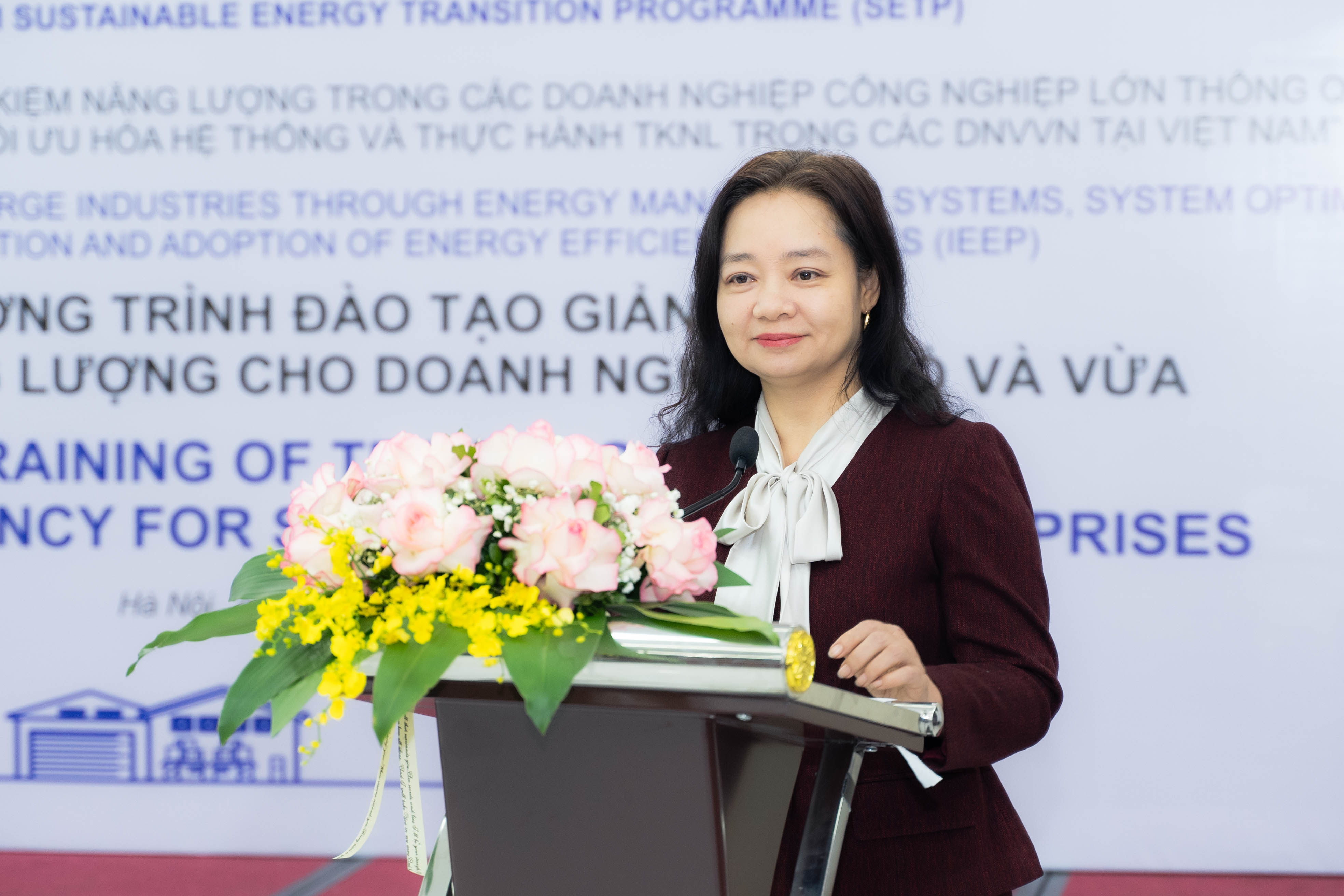 Phát biểu khai mạc chương trình, Bà Nguyễn Thị Lâm Giang – Cục trưởng Cục Đổi mới sáng tạo, Chuyển đổi xanh và Khuyến công (Bộ Công Thương) cho biết: “Doanh nghiệp nhỏ và vừa (DNNVV) Việt Nam có những đặc thù riêng, phần lớn là doanh nghiệp nhỏ và siêu nhỏ, đi lên từ các làng nghề thủ công hoặc mới khởi nghiệp, có ưu tiên sử dụng công nghệ nhưng hạn chế về vốn... Trên cơ sở nắm bắt những đặc thù này, Bộ Công Thương đã phối hợp với UNIDO xây dựng chương trình đào tạo giảng viên về hiệu quả năng lượng cho DNNVV với mục tiêu cập nhật các chuẩn quốc tế liên quan phù hợp với đặc thù của DNNVV tại Việt Nam. Đồng thời, chương trình cũng sẽ trang bị các kỹ năng đào tạo cần thiết cho các chuyên gia trong nước để có thể tham gia vào các hoạt động đào tạo về hiệu quả năng lượng cho các DNNVV trong thời gian tới. Chúng tôi tin rằng, chương trình đào tạo này sẽ mang lại hiệu quả thiết thực và góp phần lan tỏa các giải pháp hiệu quả năng lượng đến DNNVV”.