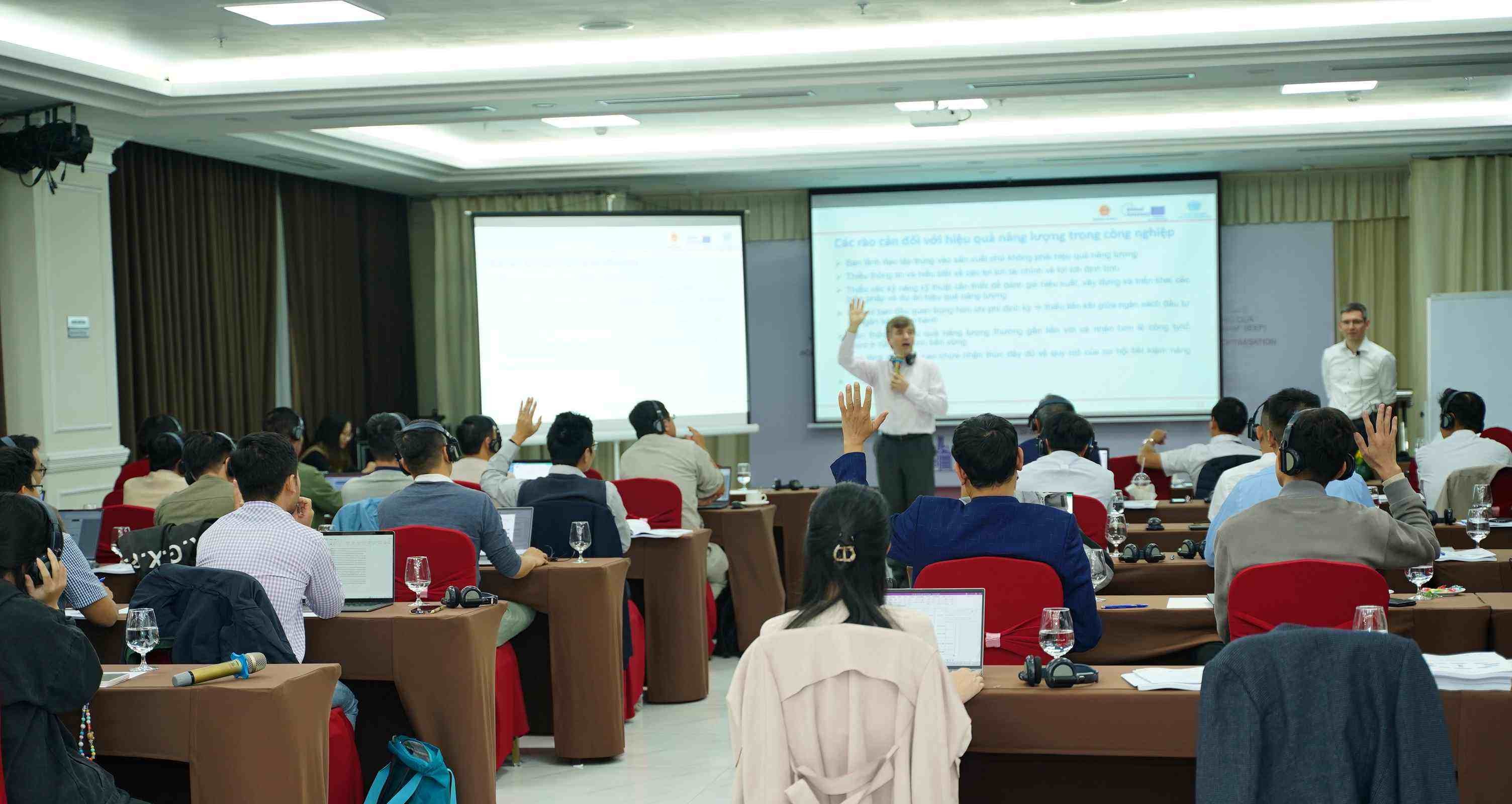 Chương trình đào tạo được hai chuyên gia kỳ cựu của UNIDO là ông Richard Morrison (Cố vấn năng lượng chính, Giám đốc Công ty TNHH Optien) và ông Colin Donohue (Thạc sĩ Phát triển bền vững, Chuyên gia tư vấn cấp cao về Năng lượng & Carbon tại Công ty TNHH Optien) thiết kế và trực tiếp giảng dạy. Kết thúc khóa học, các học viên được kỳ vọng có thể: i) hiểu rõ vai trò, trách nhiệm của một giảng viên và cách truyền đạt nội dung cho DNNVV; ii) nắm khung kiến thức cơ bản về hiệu quả năng lượng và cách áp dụng công cụ đánh giá, phân tích dữ liệu tiêu thụ năng lượng, thiết kế và trình bày kế hoạch hành động phù hợp với đặc thù DNNVV; iii) vận dụng các kỹ năng đào tạo, thuyết trình, giao tiếp và làm việc trên hiện trường DNNVV; iv) xây dựng mô hình tình huống và hoạt động thực tế nhằm tăng tính ứng dụng và khả thi tại địa phương.