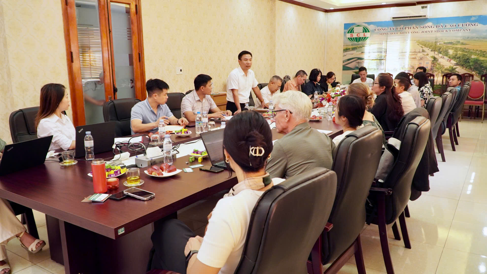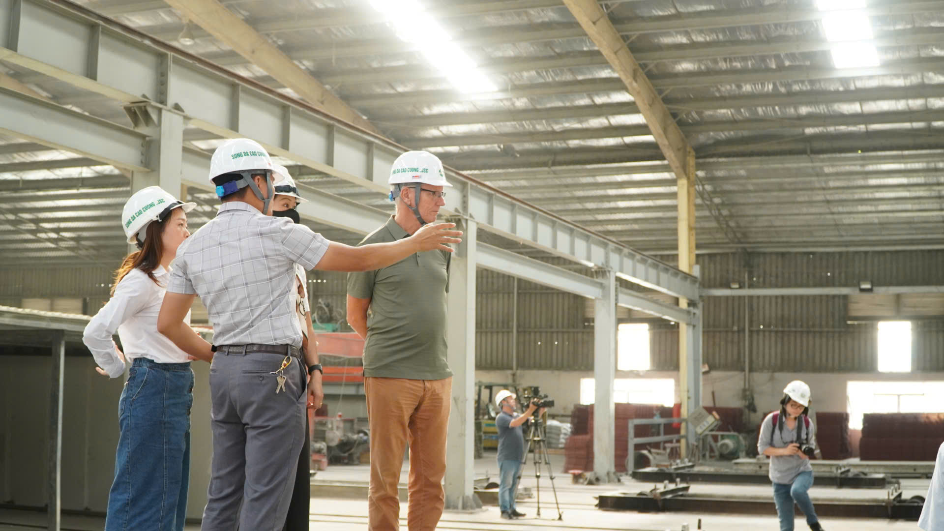 A representative of Song Da Cao Cuong Joint Stock Company introduced and guided the delegation during the factory tour.