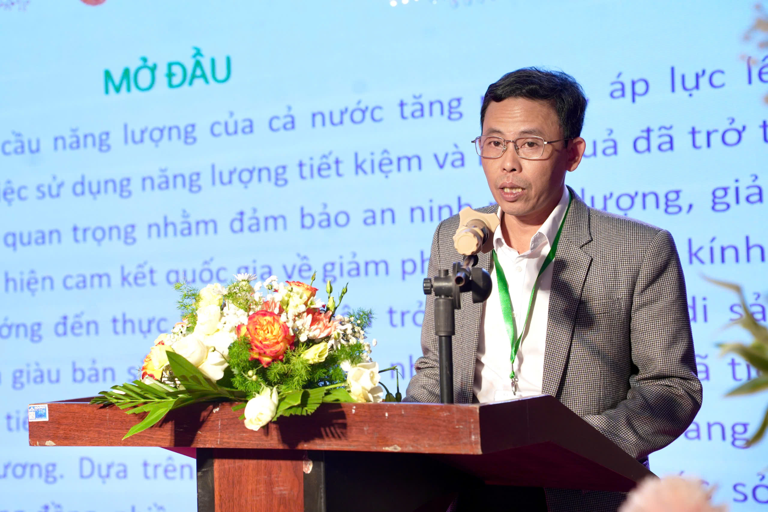 Ông Trương Hoàng Công Danh, Trưởng phòng Quản lý năng lượng, Sở Công Thương thành phố Huế trình bày kinh nghiệm của thành phố tại Hội nghị Sử dụng năng lượng tiết kiệm và hiệu quả toàn quốc năm 2025.