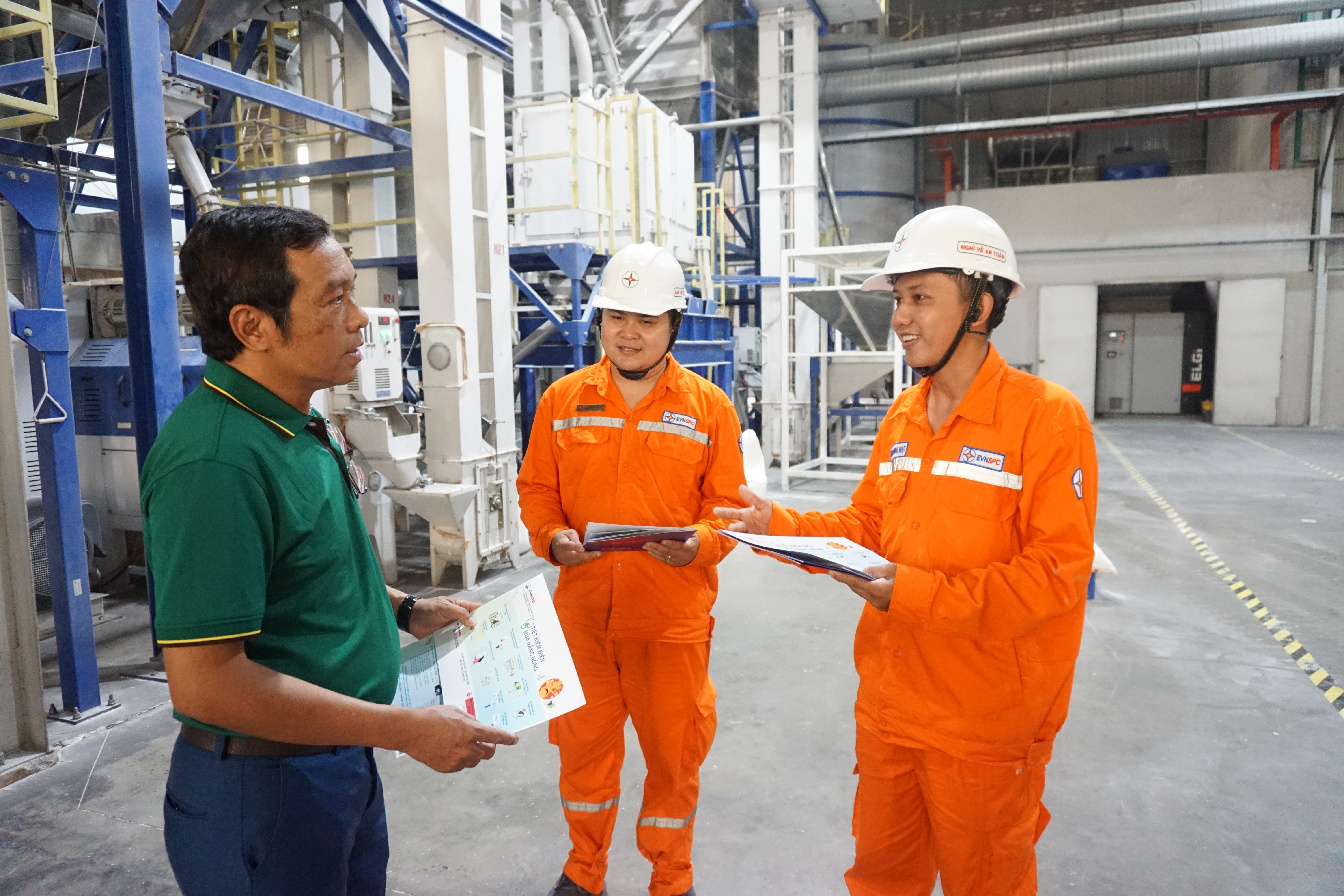 Nhân viên Điện lực tuyên truyền sử dụng điện an toàn, tiết kiệm, hiệu quả tại doanh nghiệp. (Ảnh: EVNSPC)
